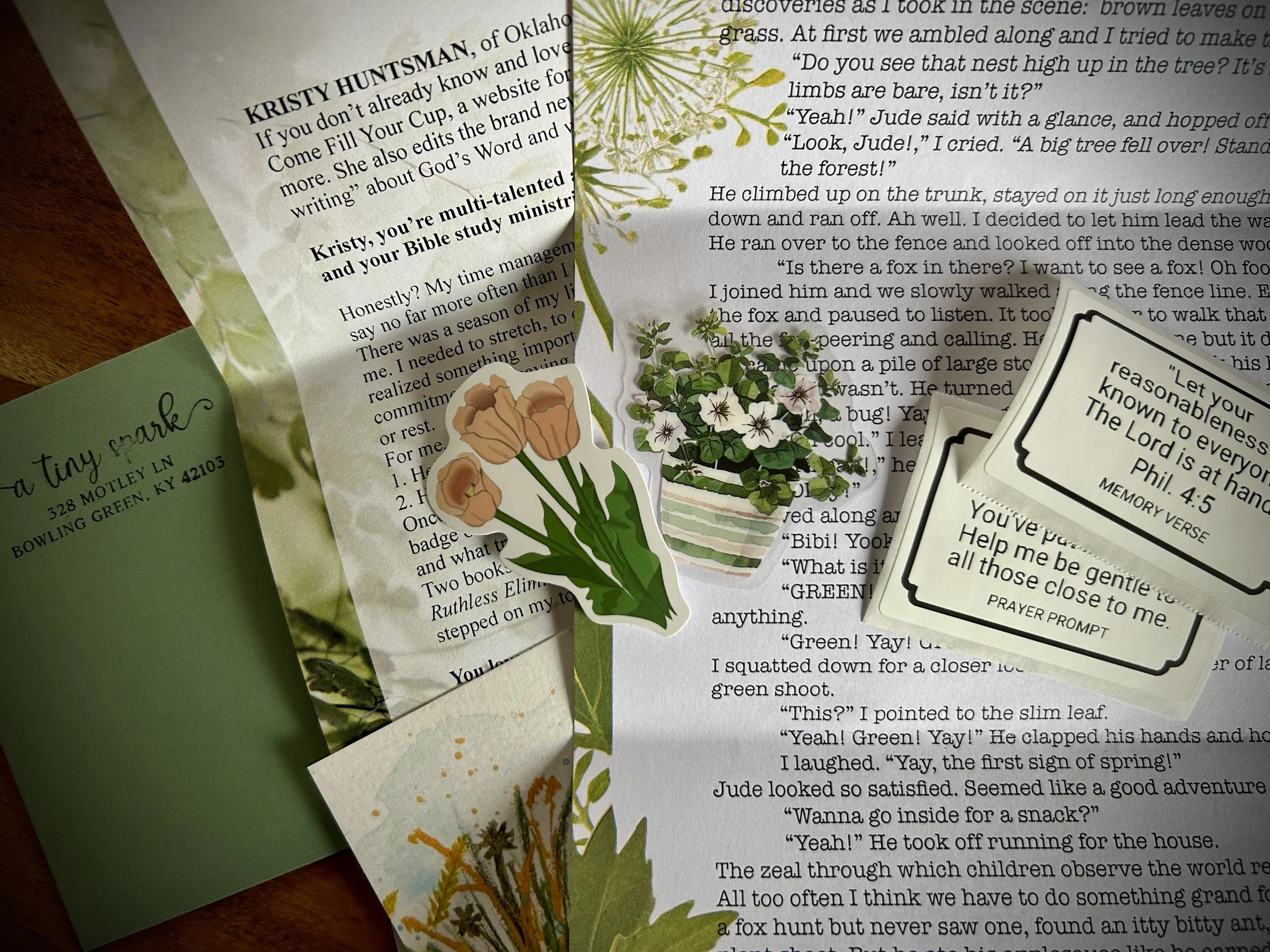 For those who crave a break from the digital world and enjoy slow living and paper mail! Personal letter, original art, Christian woman interview, stickers, prayer prompt, memory verse, tiny surprise and more every month with membership.